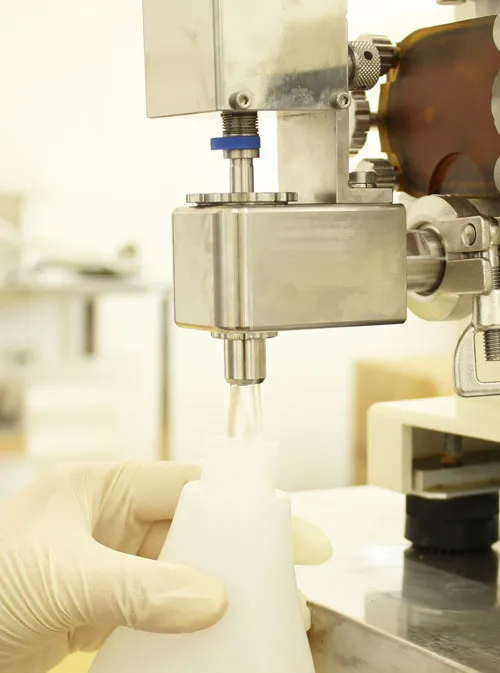 - 充填は、品質維持管理されたクリーンルームで作業を行います。